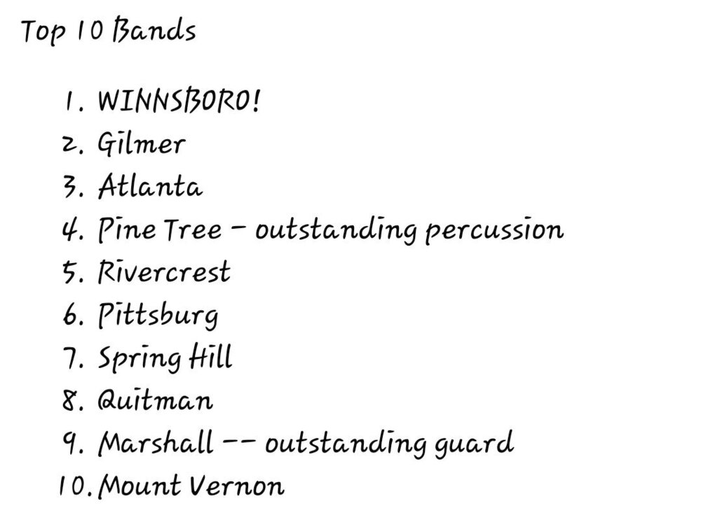 I would think that Mineola vs any 3A school, but Winnsboro put a target on them for sure... especially since 2 of their band directors have gone to Mineola in the past 4 years. -