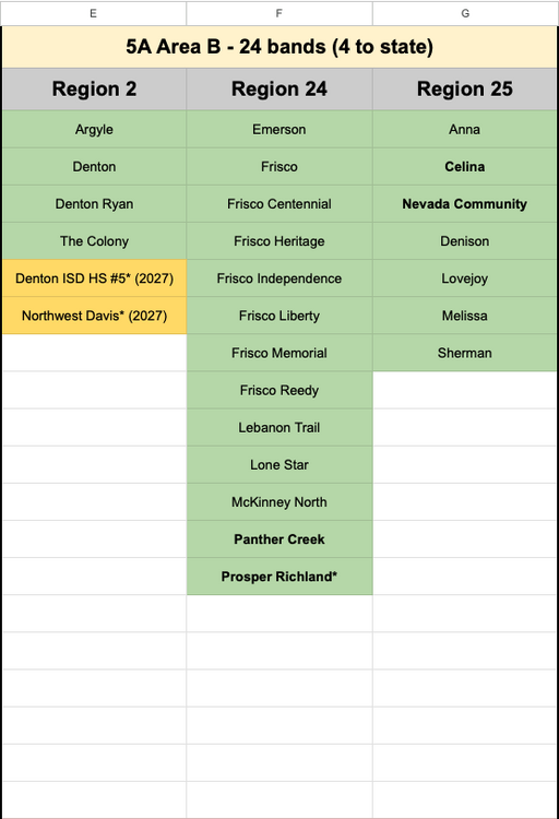 flutelolbro Posted November 13, 2025 Posted November 13, 2025 10 hours ago, Toasty said: Yeah my bad, I confused them with Celina who actually would transfer to area B since they’re region 25, so we’d have 24 4 state then, also to respond to what you said earlier, I don’t see Celina being a contender for state, I see them at max bottom of finals, we saw this as McKinney where they placed 18th below panther creek, they’re a good program but as of right now they can’t compete with 5A’s and need time to adjust. From what I saw in the Realignment forum, Community might move up to 5A with Celina which means there could be 25 bands with 5 bands at state. Tubalord11 and WanderingTraveler 1 1 Quote